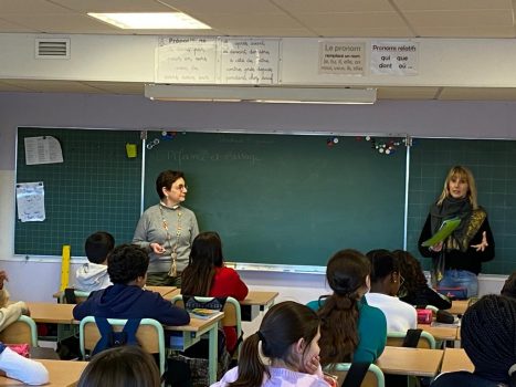 devant 2 classes de CM1 et CM2 l