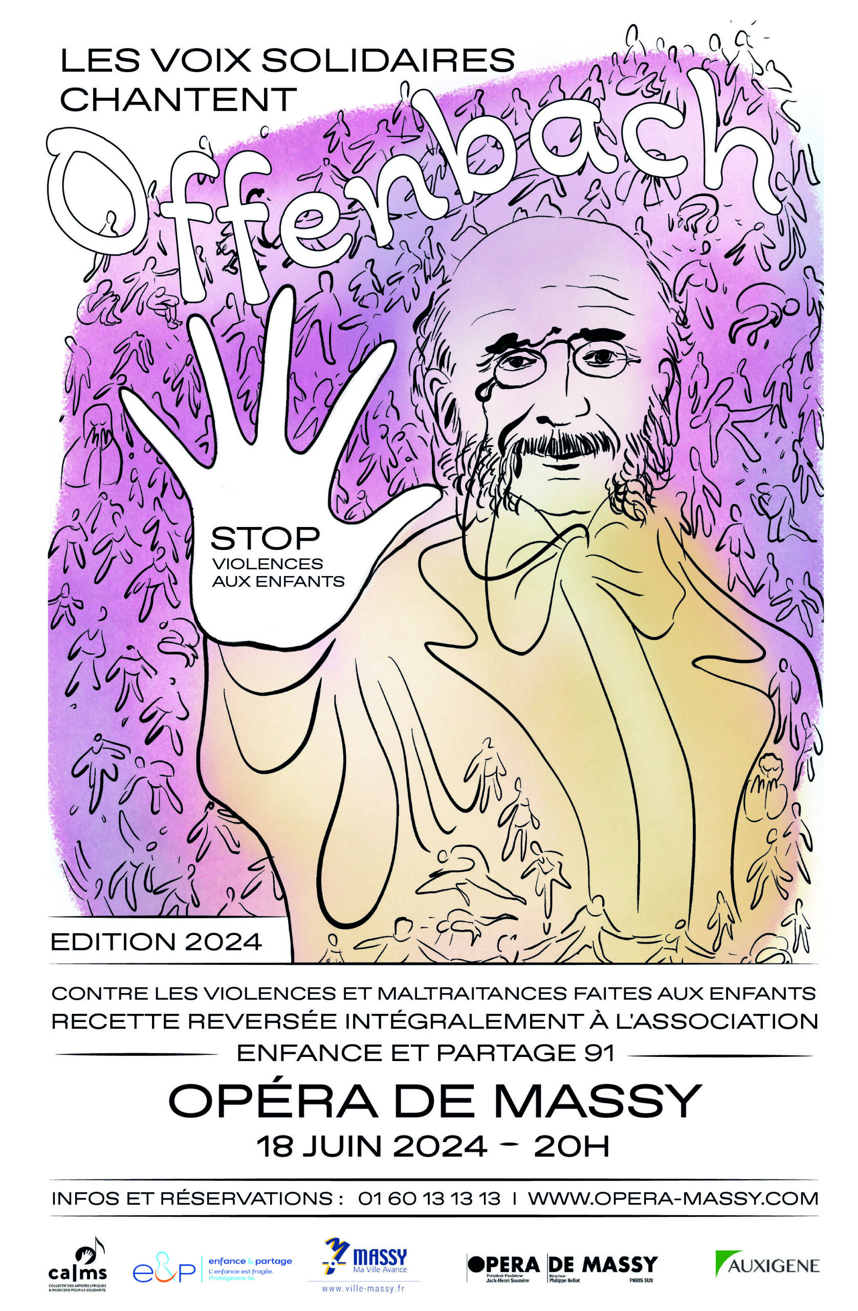 Lors de cette soirée qui promet d’être riche en émotions, Le CALMS (Collectif des Artistes lyriques et Musiciens pour la Solidarité) va mettre à l’honneur en leur reversant l’intégralité de la recette de ce concert le Comité de l’Essonne de l’association ENFANCE ET PARTAGE qui lutte depuis plus de 35 ans lutte contre les violences faites aux enfants.